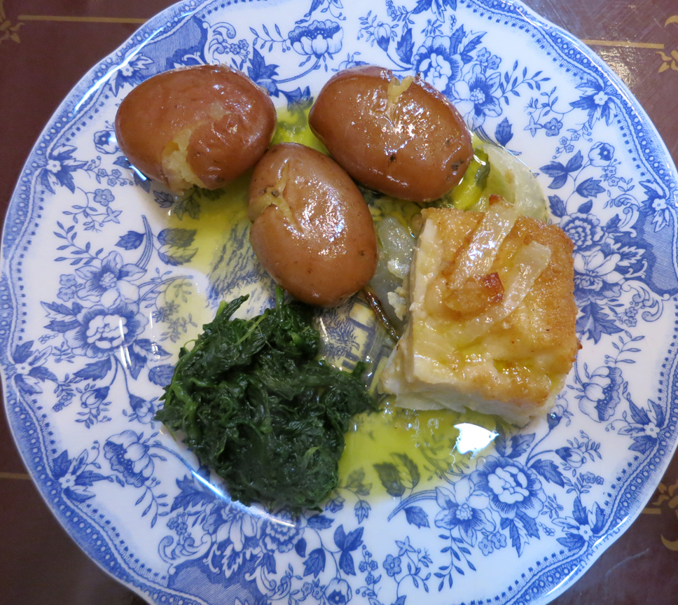 With summertime here, the go-to wine in Portugal is Vinho Verde. Its light, crisp, somewhat mineral bouquet and palate, often exhibiting peach and orange flavors, is perfect to accompany the many dishes prepared with cod fish, which is a staple in this country with a long coast along the Atlantic Ocean. At Vila Nova, their longtime cook prepares Bacalhau Assado O Forno (cod, baked in the oven), with onions and garlic, served with roasted small potatoes and sautéed kale, which is another staple of Portuguese cuisine that predates by centuries the new-found popularity of this vitamin and antioxidant-rich vegetable.