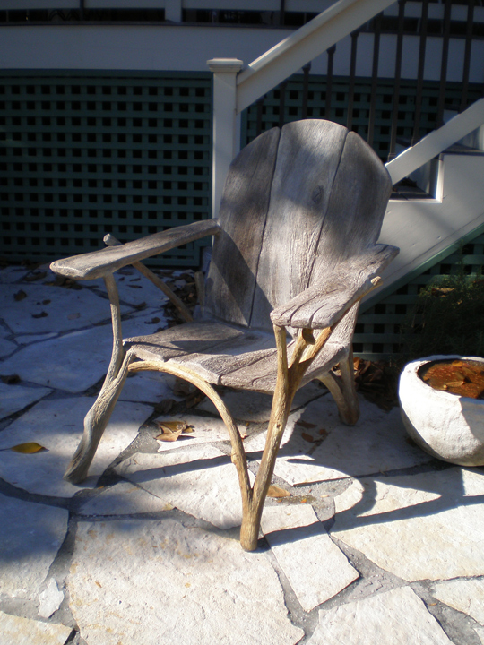 Davis is a rocailleur, a sculptor who transforms rebar, steel lathe and concrete into objects that appear to be crafted from wood. Her pieces are “functional outdoor sculptures,” like Adirondack chairs, tables and garden benches. If you see one in a garden, you’ll swear it’s made out of branches and lumber. Only the concrete’s telltale weight gives it away.