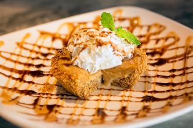 Banoffee Pie: A homemade graham cracker crust is layered with bananas and a toffee filling made from caramelized condensed milk, then finished with fresh whipped cream.