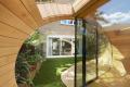 Tucked just outside a 1950s terraced house in St. John’s Wood is a garden pavilion containing a small office alongside garden storage space. Called Shoffice because it is a shed and an office, this sculptural object flows beautifully into the garden space. Formed by two steel ring beams, timber ribs and stressed plywood skin, the lightweight structure sits on top of a minimal pad foundation. The Shoffice was a collaborative effort between architect Platform 5 Architects, structural engineer Morph Structures and contractor Millimetre. The office space is nestled into an extruded timber elliptical shell, which curls over itself and forms a small terrace in the lawn. The interior is oak lined and fitted with storage and a cantilevered desk.