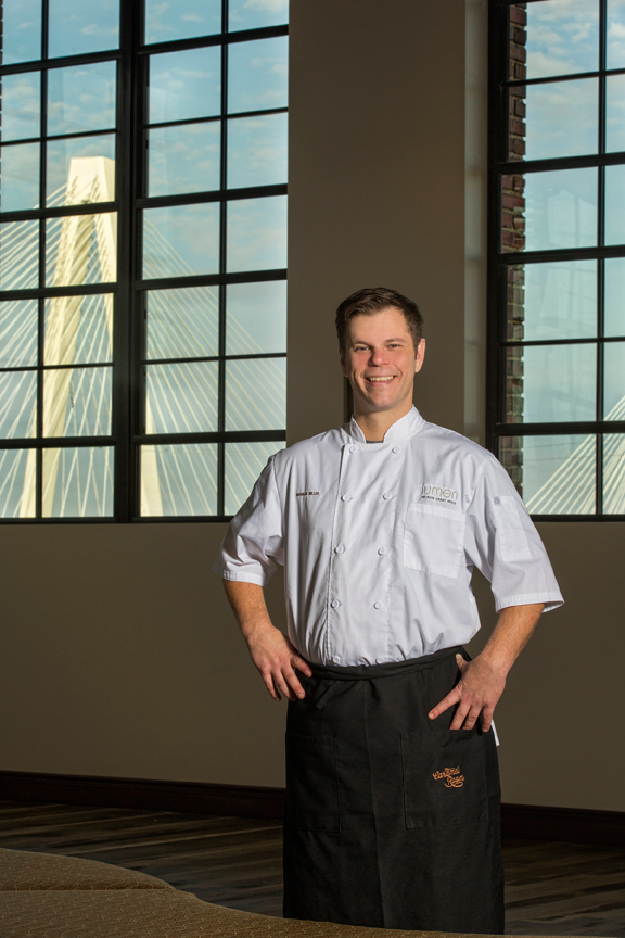 Bradham-Little and Executive Chef Nick Miller work for 23 City Blocks Catering, the parent company that oversees the Caramel Room at Bissinger’s, 1600 North Broadway, and Lumen Private Event Space, 23 blocks to the southwest at 2201 Locust St.