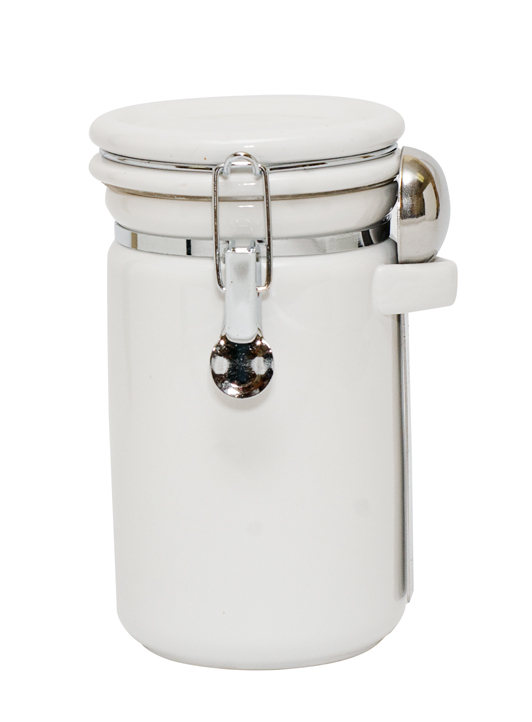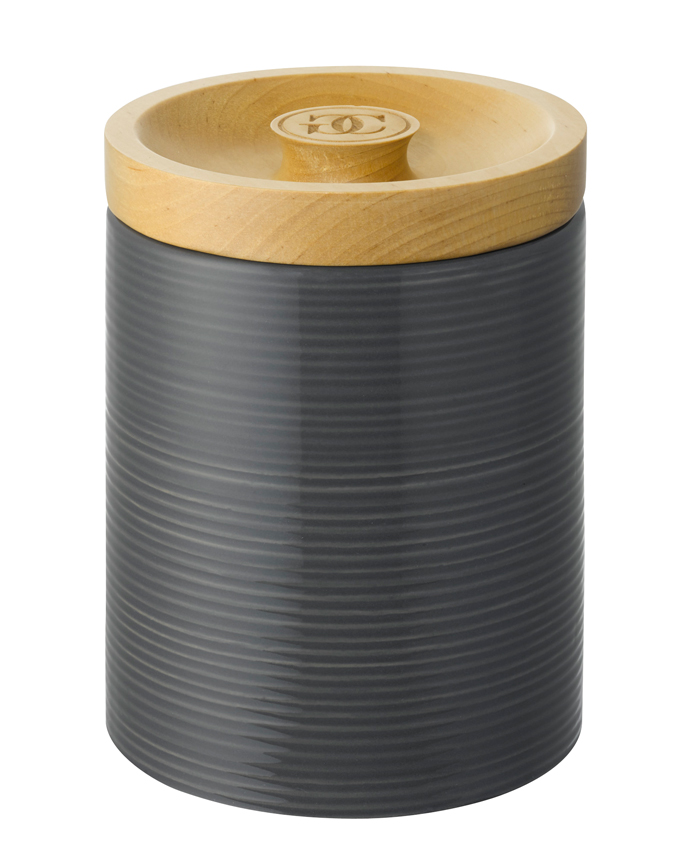 nine: Ribbed canister with maple lid, available at Williams-Sonoma.