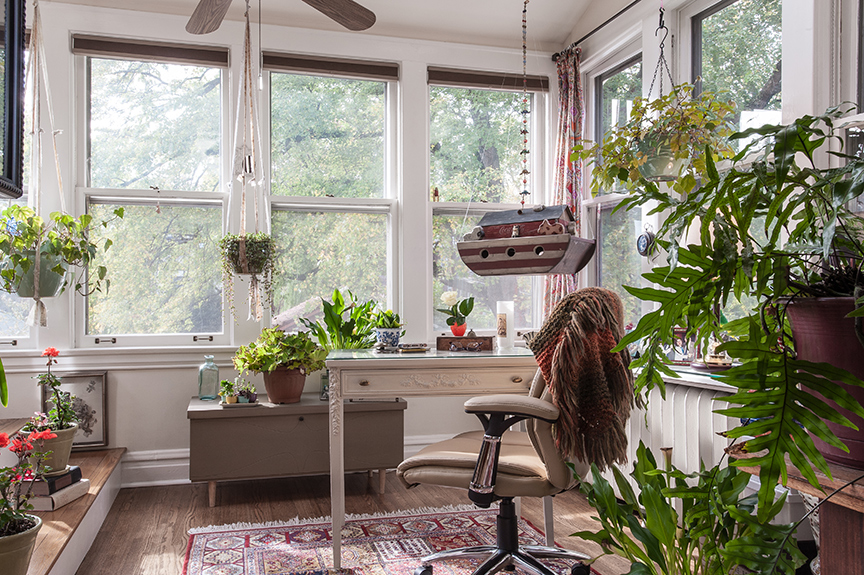 “I’ve made so many memories of the people who have been in this home and lived here,” Carlin says with a smile. “Your house should tell your story of your lineage and the people who have been in your life. Levity is a big part of the story.” Every room and item in Carlin’s home has a story. From the stained glass windows she unearthed behind the boarded up windows to her grandmother’s desk where she pens notes to friends and family, Carlin has designed her home as her personal sanctuary.