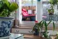 Just off the breakfast area is the living room where Carlin loves to sit and enjoy the view of her pergola. Particularly notable in this space is a cedar chest her grandmother brought from Sweden. Carlin had the chest restored along with an original Kenwood stereo her father had since childhood. She even has the original receipt, which she keeps tucked in the wardrobe. “I inherited a lot of these pieces when my parents were still alive,” she explains. “They are even more special because I was able to learn the history and origin of each piece from them.”