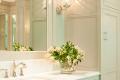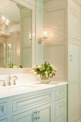 This master-bath redo is very respectful of the Tudor era. The craftsmanship in the cabinetry and millwork is beautiful. We love how the designer captured the original arch.
