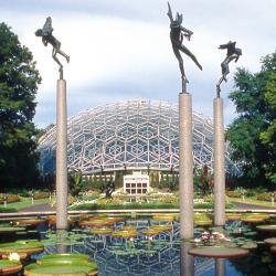 Treat out-of-town holiday guests to a walk through the Climatron® at the Missouri Botanical Garden. The Climatron is the first geodesic dome to be used as a conservatory, incorporating the principles of R. Buckminster Fuller, inventor of the geodesic system. The Climatron opened to the public on October 1, 1960. The Climatron has no interior support and no columns from floor to ceiling, allowing more light and space per square foot for plants than conventional designs. It rises 70 feet in the center, spans 175 feet in diameter at the base, has 1.3 million cubic feet and encloses approximately 24,000 square feet.