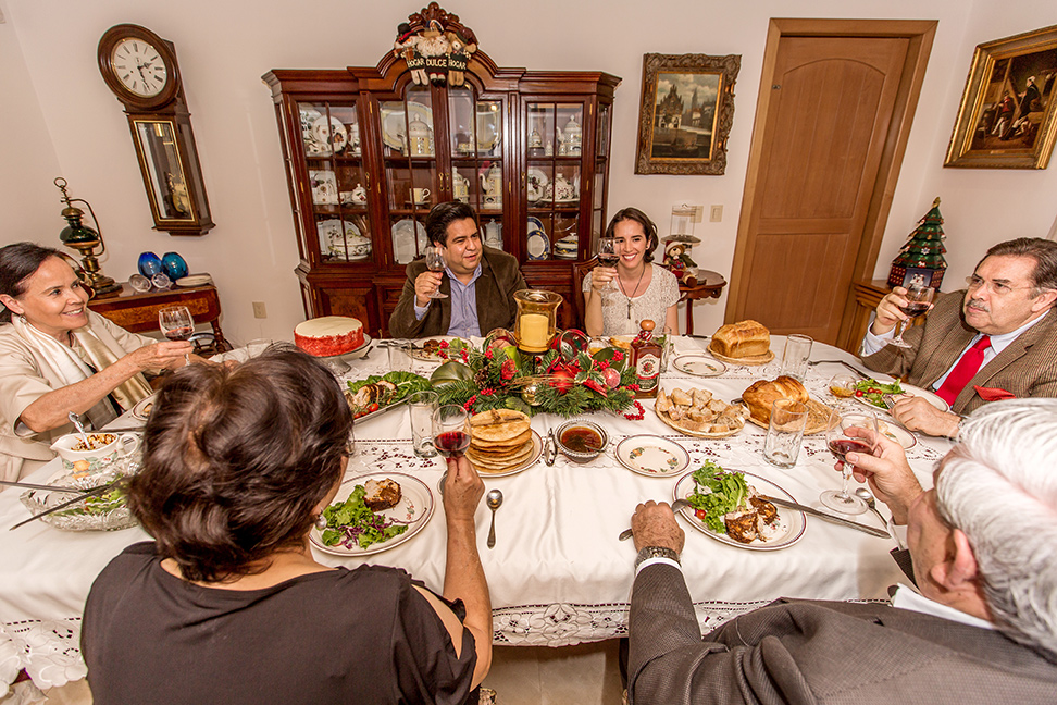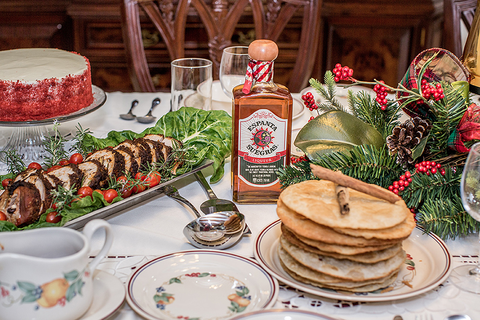 These roasted apples, Mexican rice pudding (arroz con leche) and other treats are made by Guillermo’s wife Laura Villasenor Camarena and her daughter Maria Laura Mendoza Villasenor, who also works with her father and brother in the family distilling business. On Christmas Eve, they all gather in the family’s antique-filled living room, with heirloom holiday decorations, like simple Nativity crèches with Hummel-like figurines, and around the dining room table, where candles flicker in centerpieces festooned with pine branches, red and gold ribbons and Christmas balls.