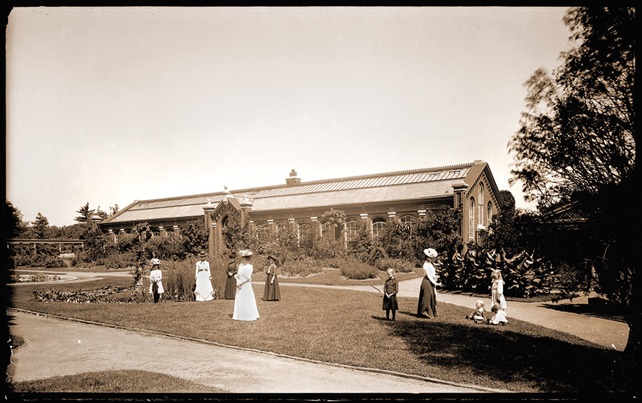 The Linnean House was originally designed to be an orangery, a house to overwinter citrus trees, palms and tree ferns. These large potted plants provided bold accents in the outdoor gardens throughout the summer and were brought in each winter. The house underwent a major renovation shortly after World War I, and its purpose shifted from a warm overwintering house to a cool display greenhouse.