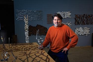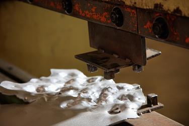 “I really like working with aluminum. Aluminum is soft; it’s a soft material but there are so many different grades,” Tourette explains, walking among his pieces. Some twist and turn skyward, others, with shining structured channels, lay flat across expansive workbenches. "The Badlands," "The Kiss," — the qualities between one series and another are only similar in their stunning, masterful technique. “You’ve got all these different alloys that do all of these different things. There’s so much possibility,” he says.