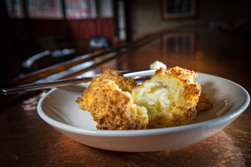 Cheddar biscuits: Grated extra-sharp cheese and a dash of garlic powder add a punch of flavor to buttery, baseball-size biscuits.