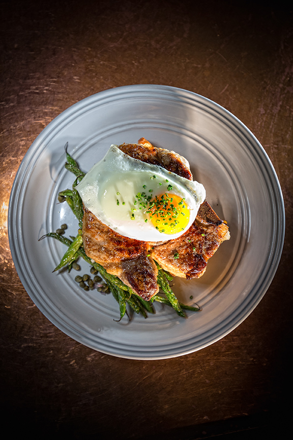Cleveland and Heath seek out the best proteins, such as hand-caught diver scallops from the Gulf of Maine and pork from Rensing’s family farm in New Douglas, IL. During the growing season, local farmers make deliveries to the restaurant’s back door.
