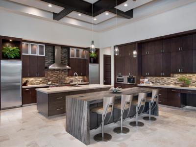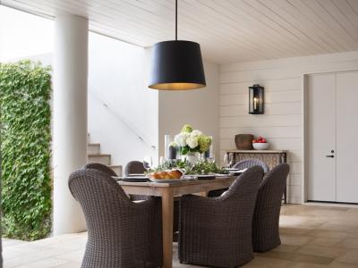 Oversized lighting does double duty providing ample light while also making a statement. Draw the eye upward with a grand fixture that is the latest craze in lighting.