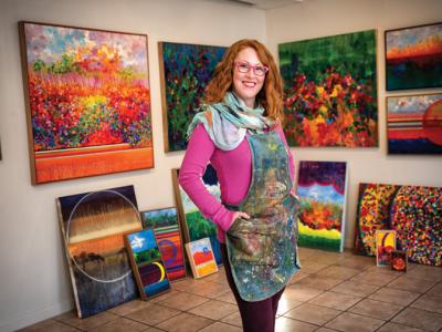 Nestled in St. Louis’s beautiful South Hampton neighborhood, Julie Malone’s studio overflows with color, imagination and paintings in process. Vibrant pieces from the Personal Hotspots series 2018...