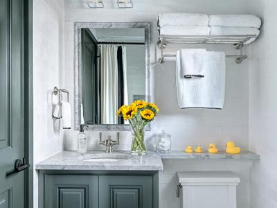 Chelsea Design Company widened a small bathroom in the client’s 1940s farmhouse by 8” to make it more functional for the homeowners’ five grandchildren to use. The space was designed with ease of...