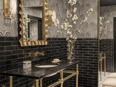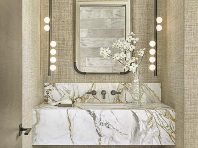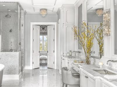 The goal for designer ADJ Interiors was to create a bathroom as glam and stunning as the homeowner herself. The starting point for the design was the Carrara marble floor tile and coordinating...