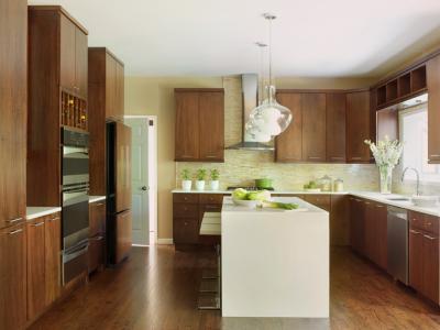 An outdated 240-square-foot kitchen is now a warm and inviting contemporary space with more useable storage and more functional workspace. Designer Melissa Rozell, of Directions...