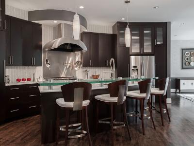 Seeking a sleek design style with a few accent elements that pop, the homeowners also needed storage and function in their redesigned kitchen. Working with Bob...
