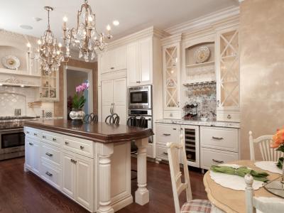 Keeping with the luxury that prevails throughout the home, the traditionally styled kitchen is an elegant space designed to appear as fine furniture. A creamy paint on the...
