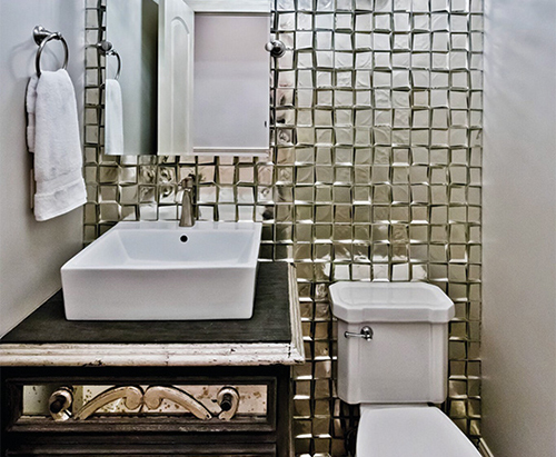 Why the judges love it: The designers of this powder room packed a lot of sparking in a little space. So glam! The rustic feel of the wood floor against the sparkle of the tile is a great balance.