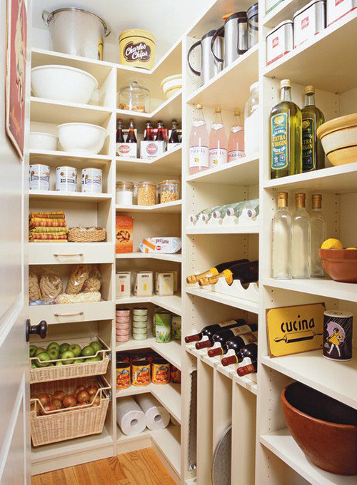 Have dead space in the corner of your walk-in pantry? Install a Lazy Susan (click here for DIY instructions) to transform every inch of your pantry into usable space for storing cans, ingredients and snacks.