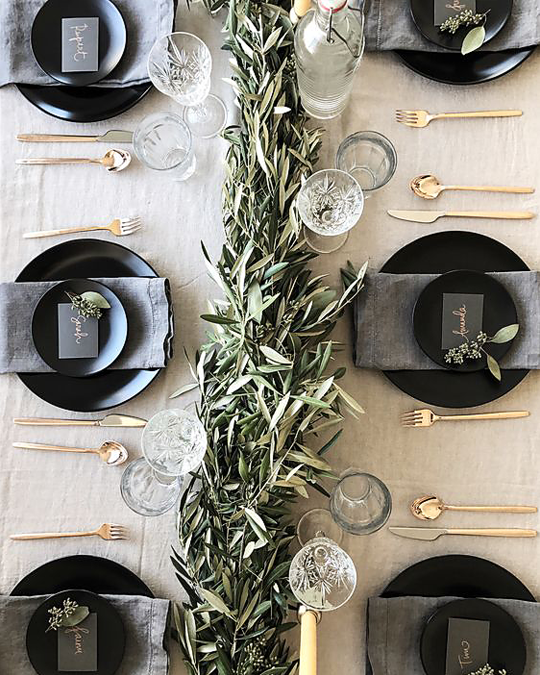 This is where the theme takes its stage. From one beautifully curated centerpiece to a myriad of merry motifs, there are infinite possibilities for your design. For warmth, add candles and jewel-toned decor, like ornaments or vases. Keep it fresh with greenery, pinecones or birch branches. Mercury glass and metallic objects add a level of sophistication to your scheme. Use garland for a statement, thread in twinkle lights for a dazzling effect. Low-key hints of red and green in any theme will give a Christmas tablescape an added sense of nostalgia. The list goes on … just remember to leave space between and above your design for easy conversation.
