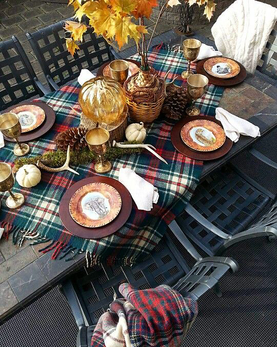Building a tablescape should be done in layers, beginning with your linens. Options for your base include tablecloths and table runners. Use one for a streamlined look, or both for a more textured tablescape. You can also think outside the box, especially if you are seating outside! Blankets and scarves are both great alternatives. Purpose and durability are also important elements to consider. Will you be upset if a guest spills gravy on your Great Aunt’s lace tablecloth? Consider for-going for now, and select something that may better serve its purpose.