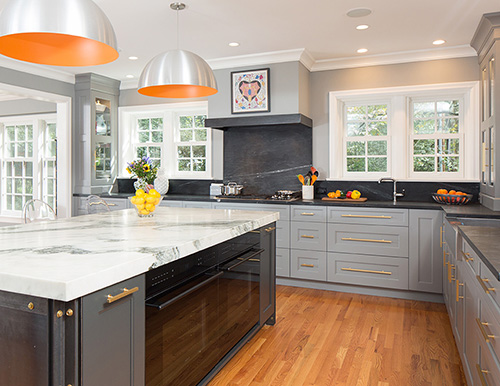 Clear Countertops – Resist the urge to use your countertops as a catchall for clutter. Relocate small appliances and get rid of nonessential décor for more functional counter space that sets the scene for a pristine kitchen.
