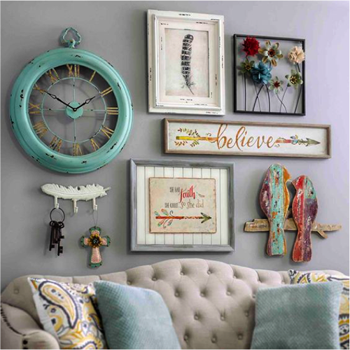 5. Combine a variety of shapes and sizes – Don't be afraid to use frames and other wall accessories that are different shapes and sizes.