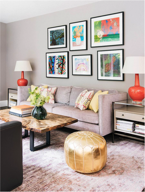 4. Pick a color scheme and run with it – Much like you choose color palettes and patterns for the rest of the room be sure to incorporate colors into your gallery wall that will complement your current color scheme.