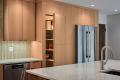This hidden pantry was part of a whole-house remodel in Portland, OR. Behind what appears to be a simple panel wall lies a spacious walk-in pantry, crafted by Muaghan's in-house cabinet shop from Rift Cut White Oak. They reconfigured the layout by borrowing square footage from the garage, creating both function and a seamless modern aesthetic. Photography by AJ Meeker.