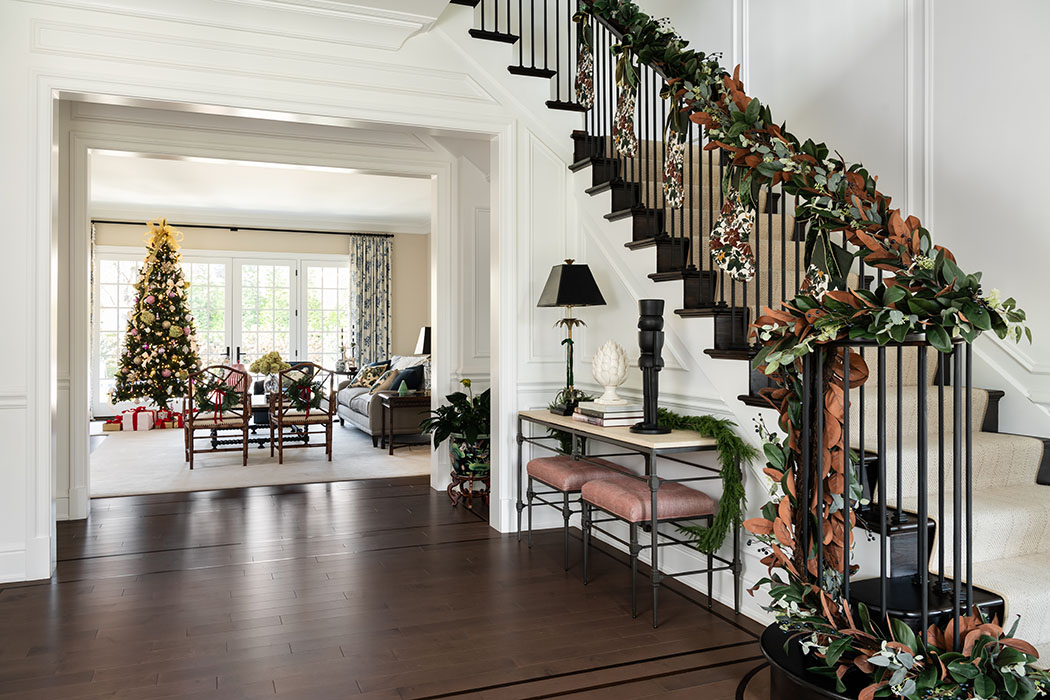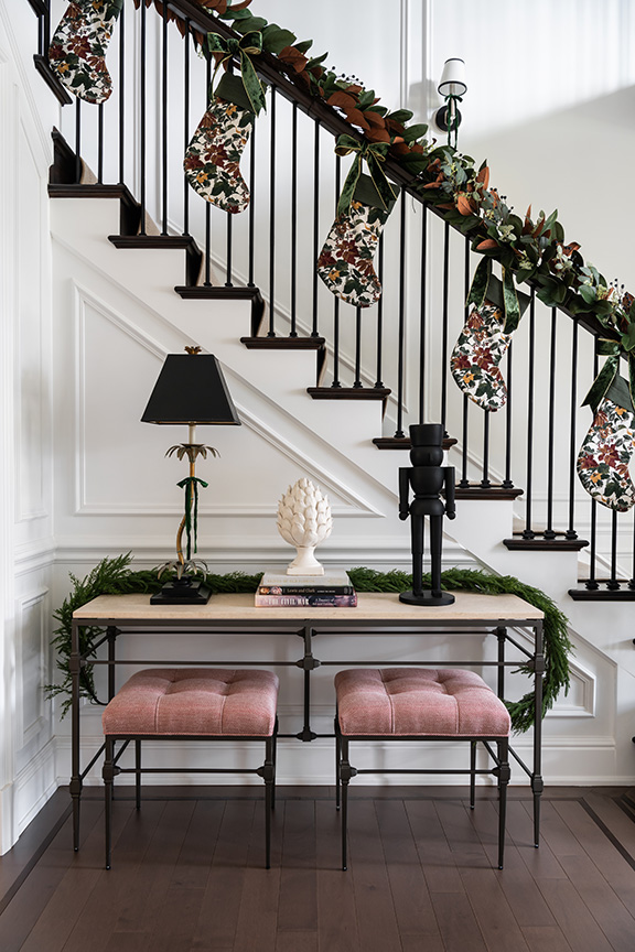 After living in the home a few years and loving everything about it, the wife says she got a call from a Glennon Guild member she knew through their children. “She asked if we would be on the Deck the Halls of Glennon Homes Tour, and I was very flattered,” says the wife. “Then I contacted Channing and Maria, and they were willing to donate their time and help me with decorating for the tour.”