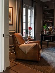 In this instance, the designers brought in subtle hints of Asian influence, derived from the wife’s early childhood in Japan when her father served in the Air Force. Detailed millwork and hardwood flooring were also important design elements. “We worked with Boardwalk Hardwood and it took us many iterations to get the exact stain we wanted for the maple floors,” says Maria. “The stain is very rich and warm, which felt traditional, but also pulls more modern.”