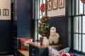 In the living room, a beloved painting of a roseate spoonbill served as inspiration for the room’s colorways. “I ended up with a lot of birds around the house, so I joked maybe we could do a bird tree in the living room,” says the wife. “This is where C&M’s talent comes in to design a tree that’s still refined based on the colors in the room and the bird art.” Maria says they utilized pinks, blues and golds for the tree, and added natural elements as well. “The owners have hydrangea bushes in the yard, so we asked her to clip some of those in the fall and store them in her basement to dry,” says Maria. “And we incorporated those dried blooms in the tree as a way to pull the outside in, which created a really gorgeous ambiance.”