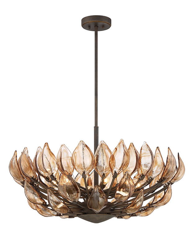 A modernized version of the natural forms seen in the Art Deco period. Metropolitan Arboles pendant in heritage bronze, available at Metro Lighting.