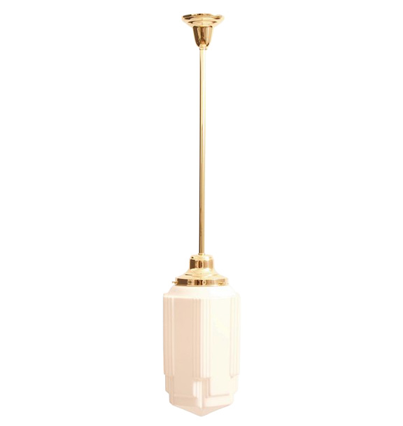 Skyscraper pendants, lamps and sconces were a common sight in the Art Deco period. They featured an elongated, tiered design reminiscent of their namesake. Vintage Art Deco skyscraper pendant, available at Rejuvination.