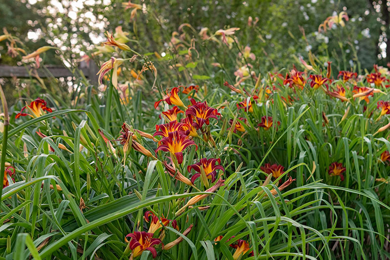 Many of the daylilies in her current garden came from the annual sale of the Greater St. Louis Daylily Society at the Missouri Botanical Garden. “I got there late,” she recalls from one particular year, “and they were just closing. As they were leaving they told me I could have everything they had not sold. It was very exciting!” she notes, thinking of the grab bag of beautiful blossoms that now grace her garden. Since she was given a leftover assortment of varieties, she was pleasantly surprised to see all of the unique colors and shapes of lilies when they bloomed the next year — an experience she never would have gotten if she had not been late to the sale!