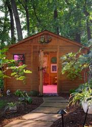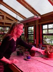 The entire garden is a tribute to Celeste’s love of nature and her close observation of the plants and their surroundings. With a mostly shaded landscape, grow lights supplement the sun in a small, fenced vegetable plot, a gardening aid her grandmother would have found amazing.