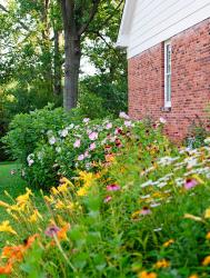 These days she depends upon a combination of fencing, Deer Off spray and a granular deer deterrent to protect her garden. While she has help with the mowing and mulching of her yard, Celeste mostly maintains the garden herself, rising at 6 a.m. “when it is cool” during the growing season to weed and look after the beds. Brent, who jokes he “gardens by marriage,” assists with chores like “digging holes” and heavy lifting. He credits Celeste with the beauty that surrounds him. “She has done a very nice job of having something blooming from early spring through fall,” he says.