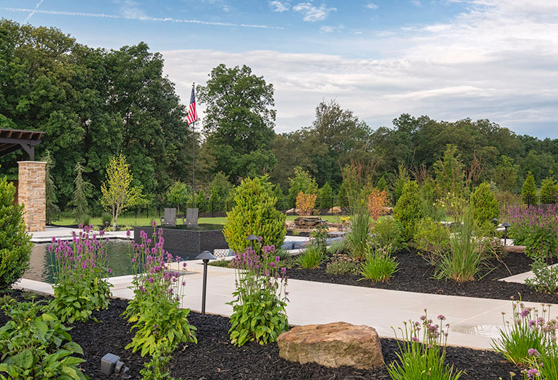 Even though much of the garden area around the pool is fenced, landscaping selections also took into consideration plants that were deer and rabbit resistant, something that is always of concern in Defiance with many multi-acre properties where deer can roam.