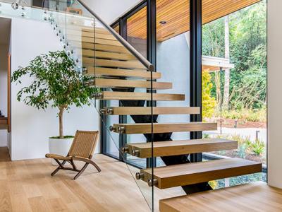 This stairwell needed to be almost transparent and allow light into the living area as well as being a simple, sculptural structure. Specific materials were chosen to be seamless with...