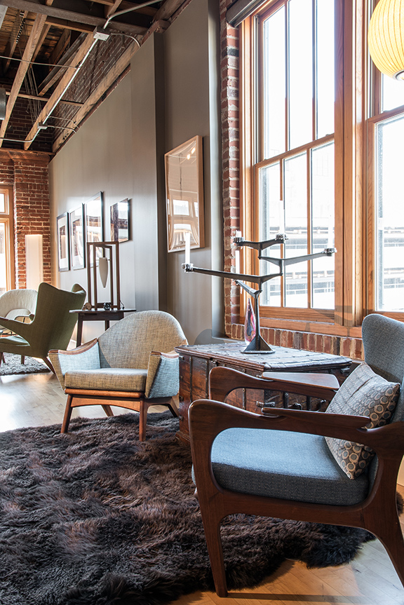Greg Lukeman and Justin Scarbrough have a passion for chairs. At last count, there were 23 designer seating pieces – each acquired for its unique Mid-century styling – arranged throughout their 2,500-square-foot downtown loft. But let’s start at the beginning…