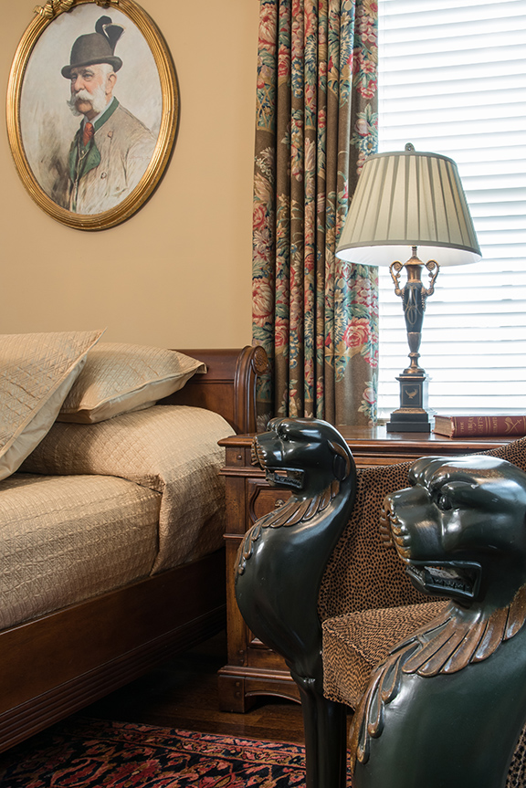 Built in 1928, the Georgian-style two-story is manageably sized with newer systems, compared to many of the other historic homes in the area that were built around the time of the World’s Fair. The active couple, who are avid cyclists, loves their city location and their proximity to Forest Park, grocery stores, restaurants and more. “You can leave work on a Friday and not get in a car until Monday,” he says. Even better is the tight sense of community in the neighborhood. In the evenings and on weekends it’s common to see neighbors strolling with a glass of wine, working in their yards or hosting impromptu dinner parties. Both homeowners had lived in the Central West End before moving to other parts of St. Louis, but after living elsewhere they realized the CWE was where they wanted to be. The couple’s shared love of living in the CWE isn’t the only thing they have in common. Both have also always preferred a more traditionally styled home. “We like the formality of a traditional home,” she says. So when it came time for her to move into a home that was already decorated and furnished, it was fairly easy to seamlessly integrate her belongings. “We took the best of our two collections and put it all together,” she explains. Over the years, both have scoured auctions for furniture and also acquired items from their travels around the world. They each learned early on in their adult lives the importance of investing in good, quality pieces instead of purchasing the “in” style that would need to be replaced after several years. “The quality and craftsmanship of antique furniture is still as good today as it was in 1700 when it was made,” he says.