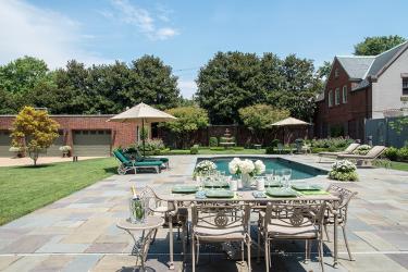 While the owners have invested decades building up their furniture collections and years arranging their home, their true pride and joy is their landscaping. Their back yard is a pristine oasis designed with structure and balance around a simple swimming pool. “There is not a plant in the yard that was here when we bought the home 20 years ago,” he says. “We have slowly brought the landscape back to life.” In addition to the multitude of trees, bushes and flowers the homeowners have planted, privacy walls also were added around the perimeter allowing the confining gates around the pool to be removed. “We spend most of our time on the weekends outside in the garden,” she says. “We get lots of gratification in the upkeep.”