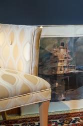 Each piece in the living room has a history to it. The leather sofa, for example, belonged to Mike’s great-grandparents and was in his grandfather’s den when he was growing up. The recliner was a find from Chicago that the designers fell in love with for the shape and brass detailing. “We are constantly thinking, ‘what does this next piece bring to the room'," Justin says.