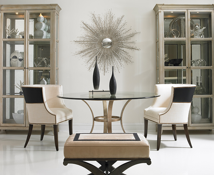 “It is definitely not a fad or craze, but a timeless design in an elegant look for the contemporary and even transitional customer. Glass-top tables, either in dining or occasional, have been in the market place for the last 50+ years. Glass will be there for many years to come as glass has more characteristic than ever before. Shape and edgework is in the demand with the more sophisticated designs. One thing I am very grateful for is the glass that has been fused and attached to the base. Years ago it was always lay-on glass, which moved causing things to spill on the table top.” Ross Anzalone, Amini’s.