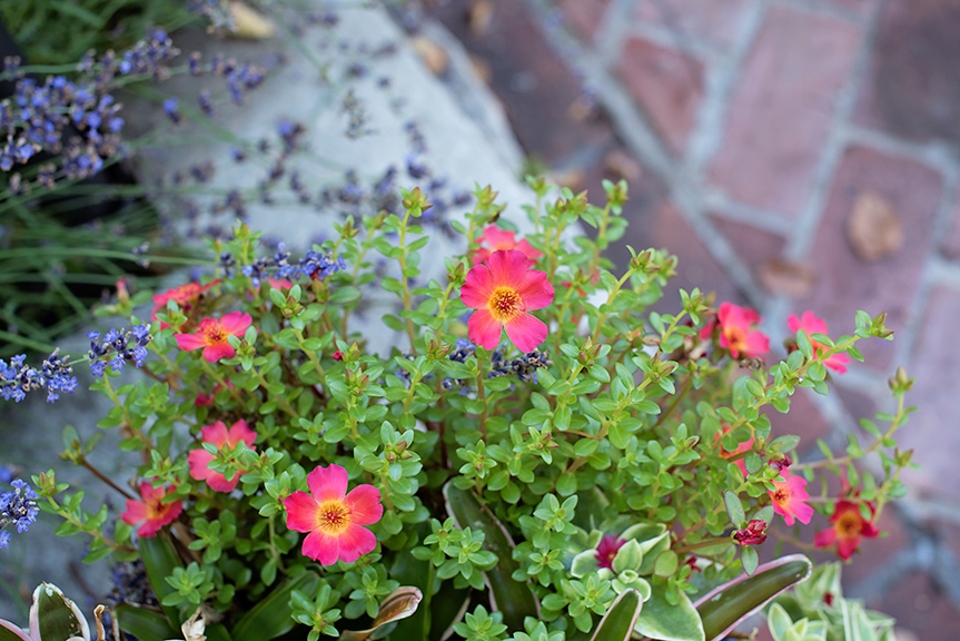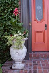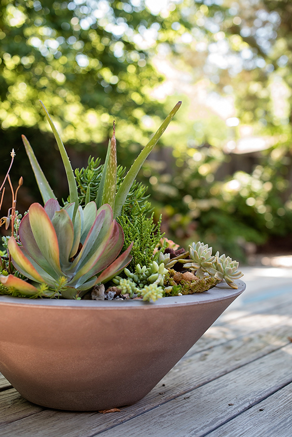 Recently, she has delved into combinations of the many different varieties of succulents, particularly in the dock-style deck by the pool. “It’s great. You only have to water them once a week. I’ve really gotten into trailing succulents and for the first time, I’m trying to over-winter them so we will see how that goes this spring,” she says.