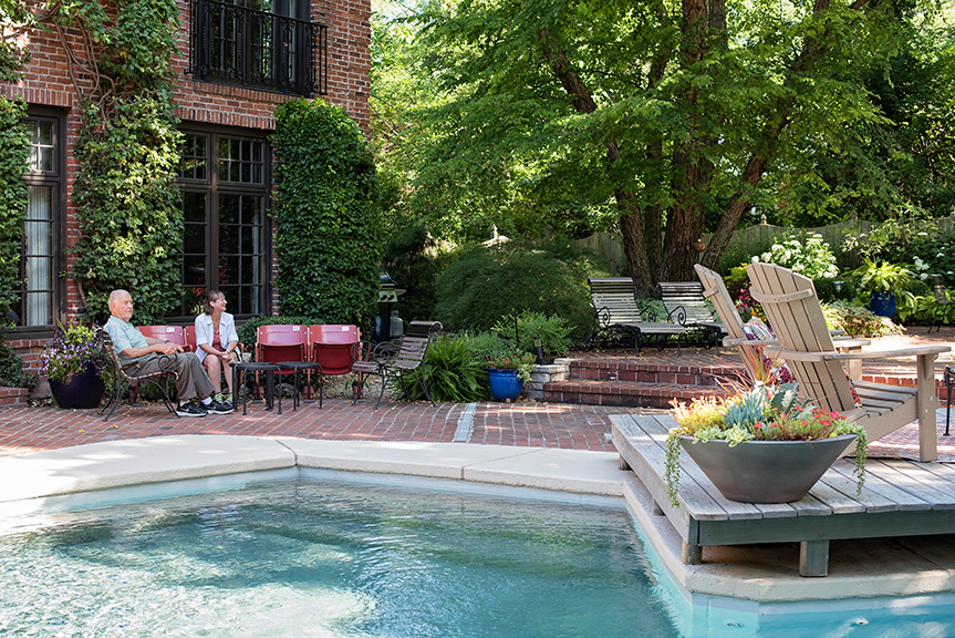 “When we first moved in there was a koi pond,” Debbie relates. “We had three young kids and two dogs, and I didn’t think I needed a koi pond. I hired a landscaping contractor and it just didn’t work out, so I was trying to do things on my own. One morning I got a call from a very nice man in my dance class, Jay Cohn, who was taking the class with his wife Marilyn.