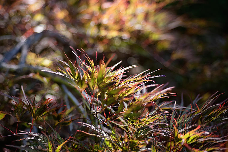 In the garden beds, stalwart shrubs include flowering spirea, boxwood, azaleas and small, ‘Fire Power’ nandina, which turn bright red in winter. Low growing, mounding Japanese maples provide punctuation marks of fine-leaf texture and delicate coloration at several spots.