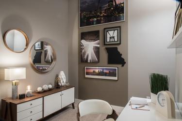 In addition to being drawn to the revitalization of the area, Dorian immediately fell in love with the West End Loft building. Built in 1914, the building was the first Ford Motor Co. auto plant in the St. Louis area and production continued there until the 1940s. Now a desirable loft building with amenities that include a pool, gym, gated parking, billiards room, hotel room and storage, the unit Dorian purchased in the building was also the right price. “There are not a lot of buildings in the Central West End with the amenities you can get here plus the amount of square footage and bonus outdoor space you get in this unit,” Dorian explains.