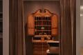 Lined with two-toned gold/silver mesh, the floating staircase is literally an art piece and visually integrates the great room with the expansive outdoor terrace. On the upper level are a media area and fully equipped bar, loft-style office, unique glass-enclosed phone “booth” for the husband’s private conference calls and tranquil secondary bedrooms.